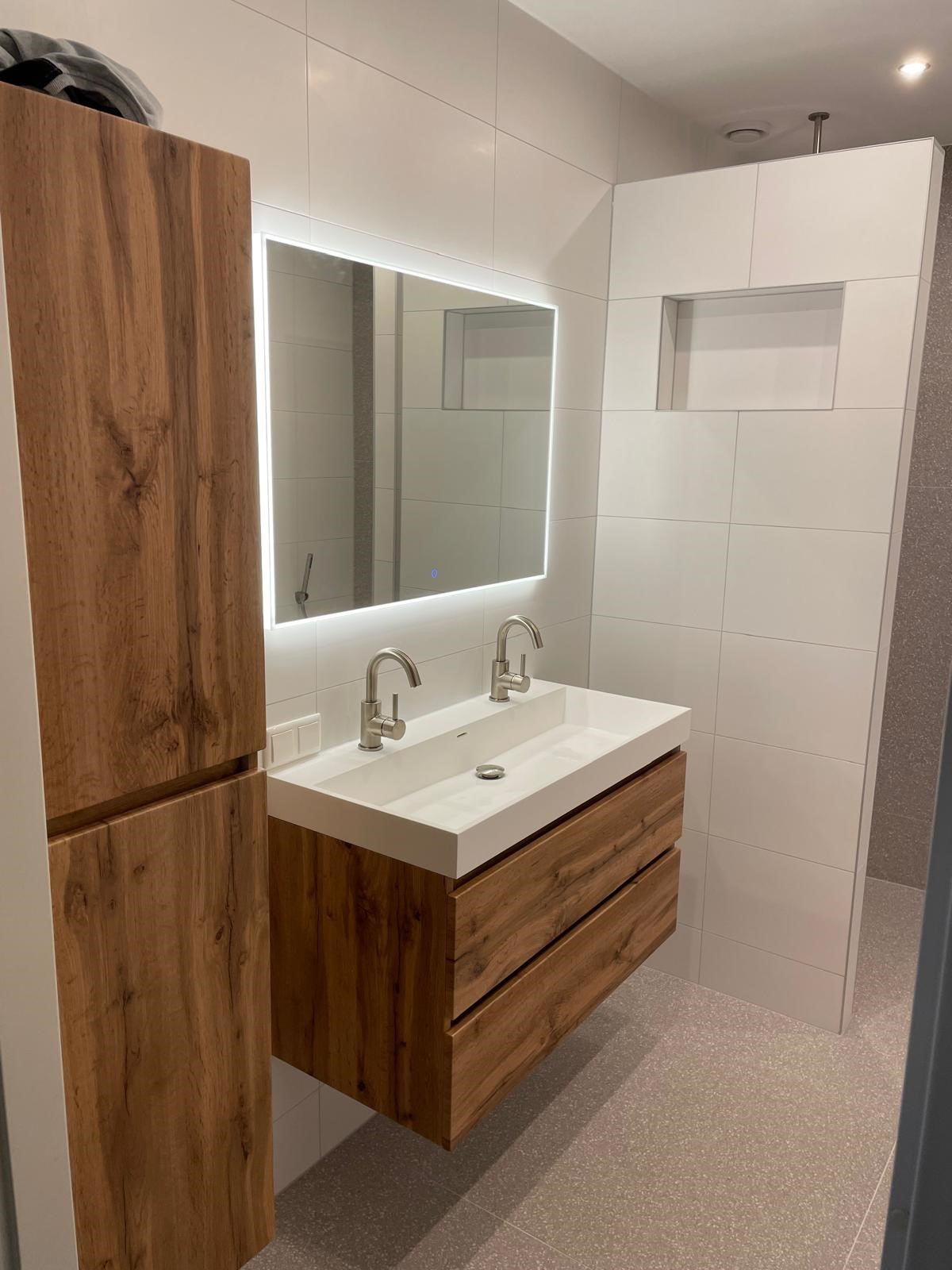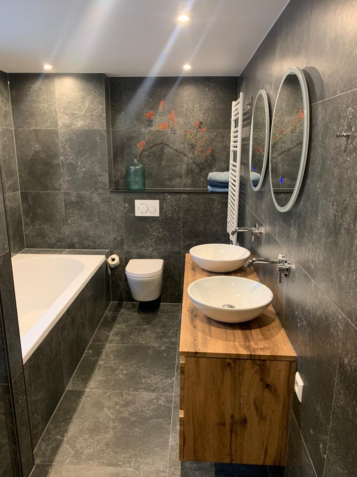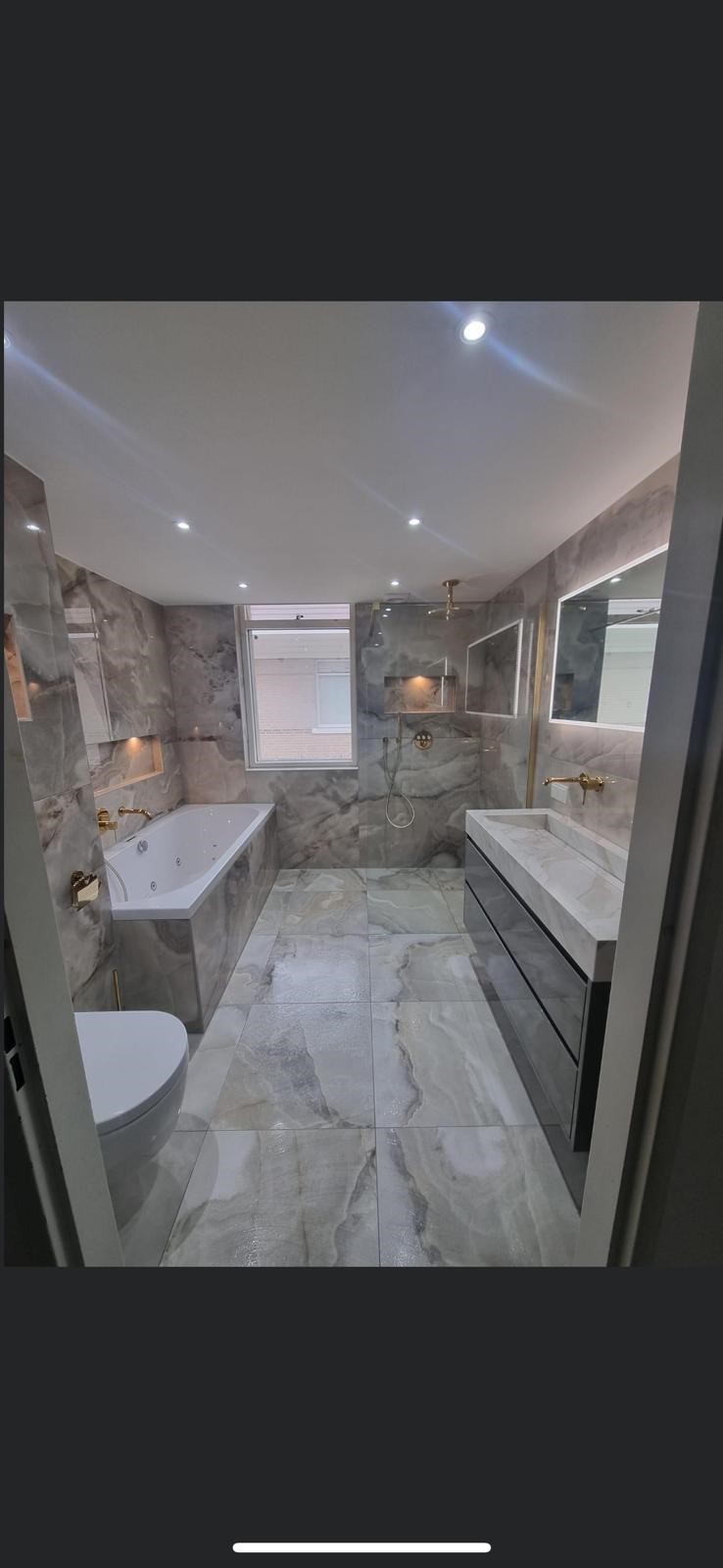 "Zeer tevreden over het eindresultaat van 2 badkamers, 3 Wc's en een plavuizenvloer in de woonkamer!! Heel erg fraai geworden allemaal mede dankzij het meedenken/adviezen vooraf en ook het zeer kundige personeel." - Harry Engelen